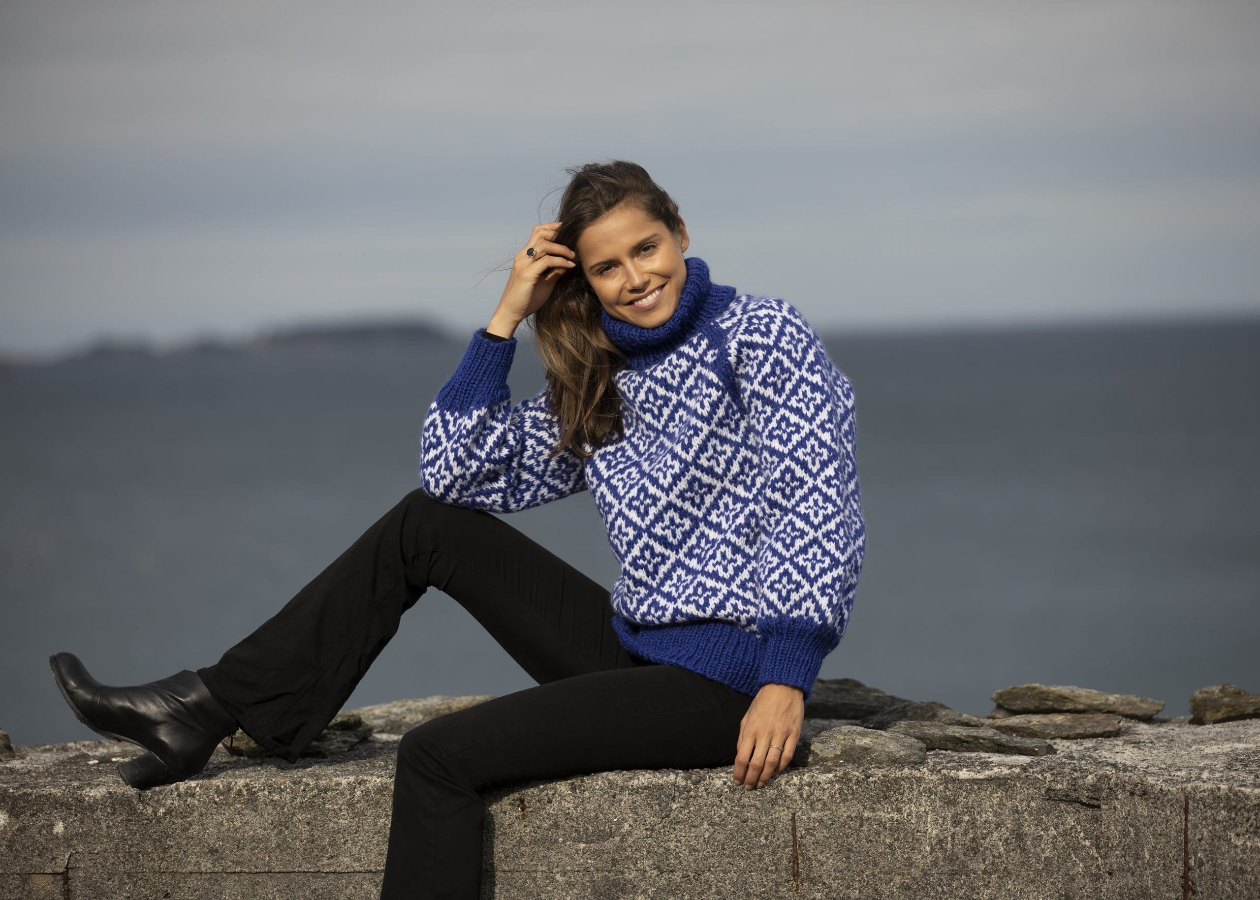 Strikkefasthet: 14 m glattstrikk i bredden på pinne nr 6 måler ca 10 cm.